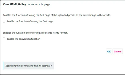При загрузке гранки статьи, модуль конвертирует её в HTML формат, и делает возможным просмотр её на странице статьи.