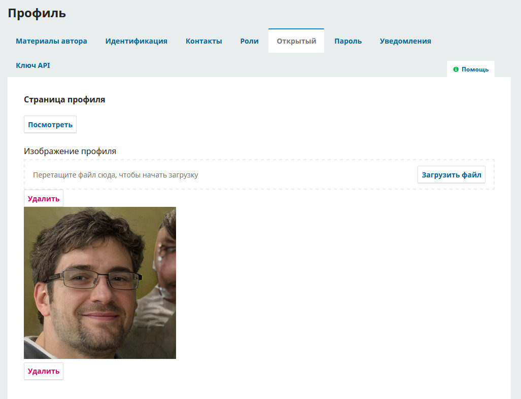 Страница автора будет активирована после загрузки автором его фотографии в панели профиле во вкладке “Открытый”.